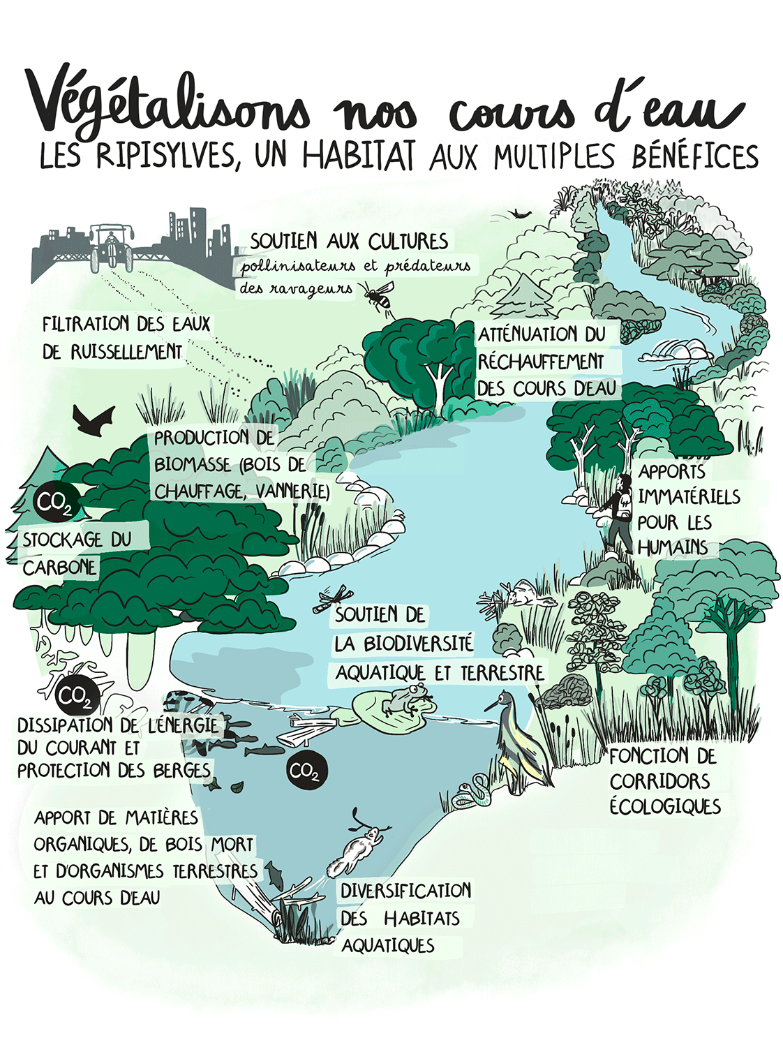 Figure 2. llustration synthétique des principaux bénéfices associés aux ripisylves.