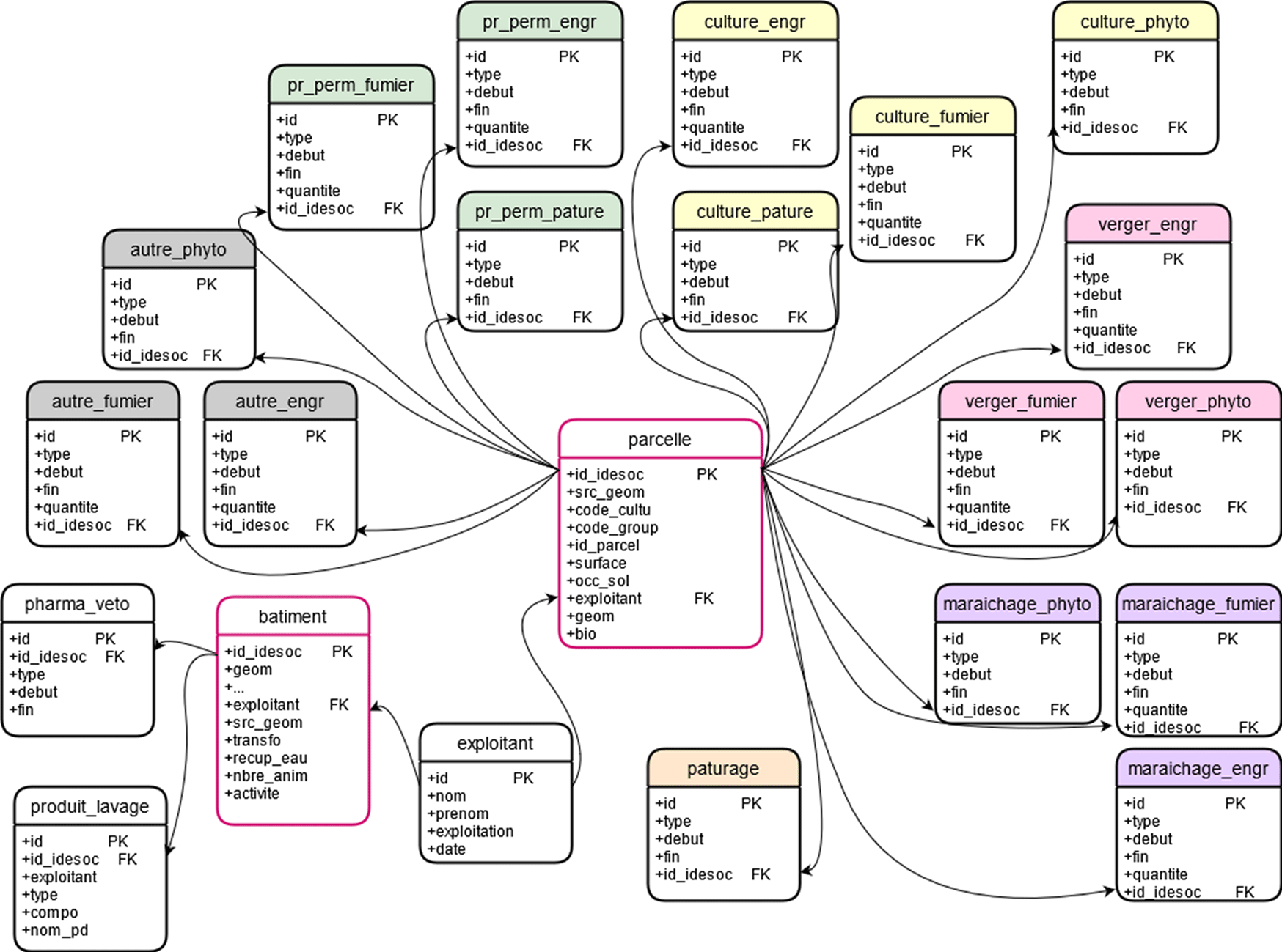 Figure 4. Schéma UML (Unified Modeling Language) de la base de données relationnelle du projet CHYPSTER.